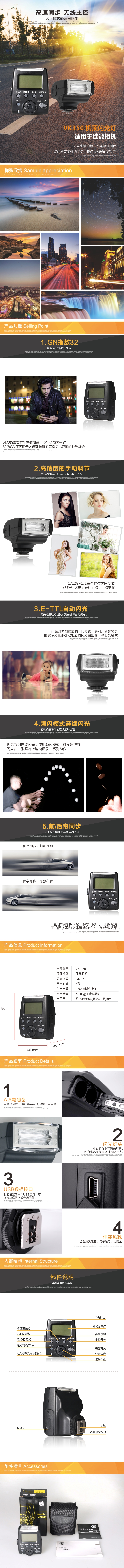 ◆ VK3350是一款小巧便攜又功能豐富的機頂閃光燈,體積只有其他閃光燈體積的1/3大小,該燈配備了自動(dòng)TTL閃光、手動(dòng)、頻閃等模式,高速同步主控同時(shí)兼具閃光包圍和曝光補償的輔助功能,用" 麻雀雖小,五臟俱全"來(lái)形容它恰到好處。