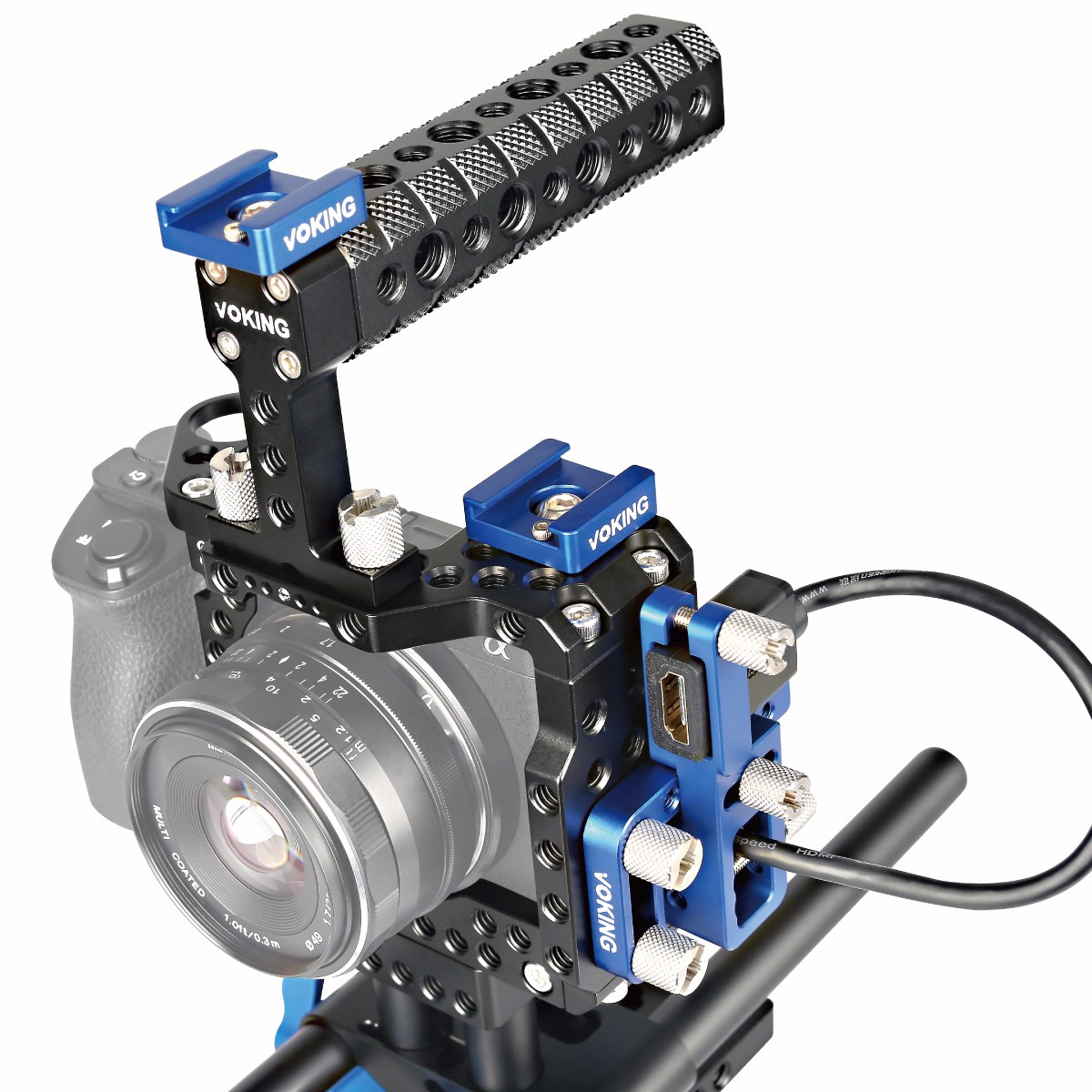 ◆ 結構上有很多螺孔,接口豐富,實(shí)用、便于安裝各種設備、拍攝時(shí)可以加裝閃光燈,監視器,跟焦器,麥克風(fēng)等,可以很好的提高拍攝效率。