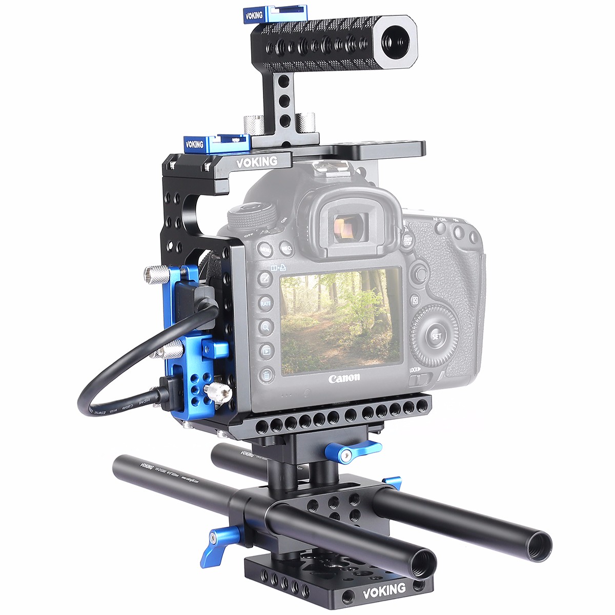 ◆ 結構上有很多螺孔,接口豐富,實(shí)用、便于安裝各種設備、拍攝時(shí)可以加裝閃光燈,監視器,跟焦器,麥克風(fēng)等,可以很好的提高拍攝效率。